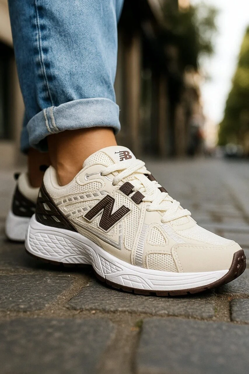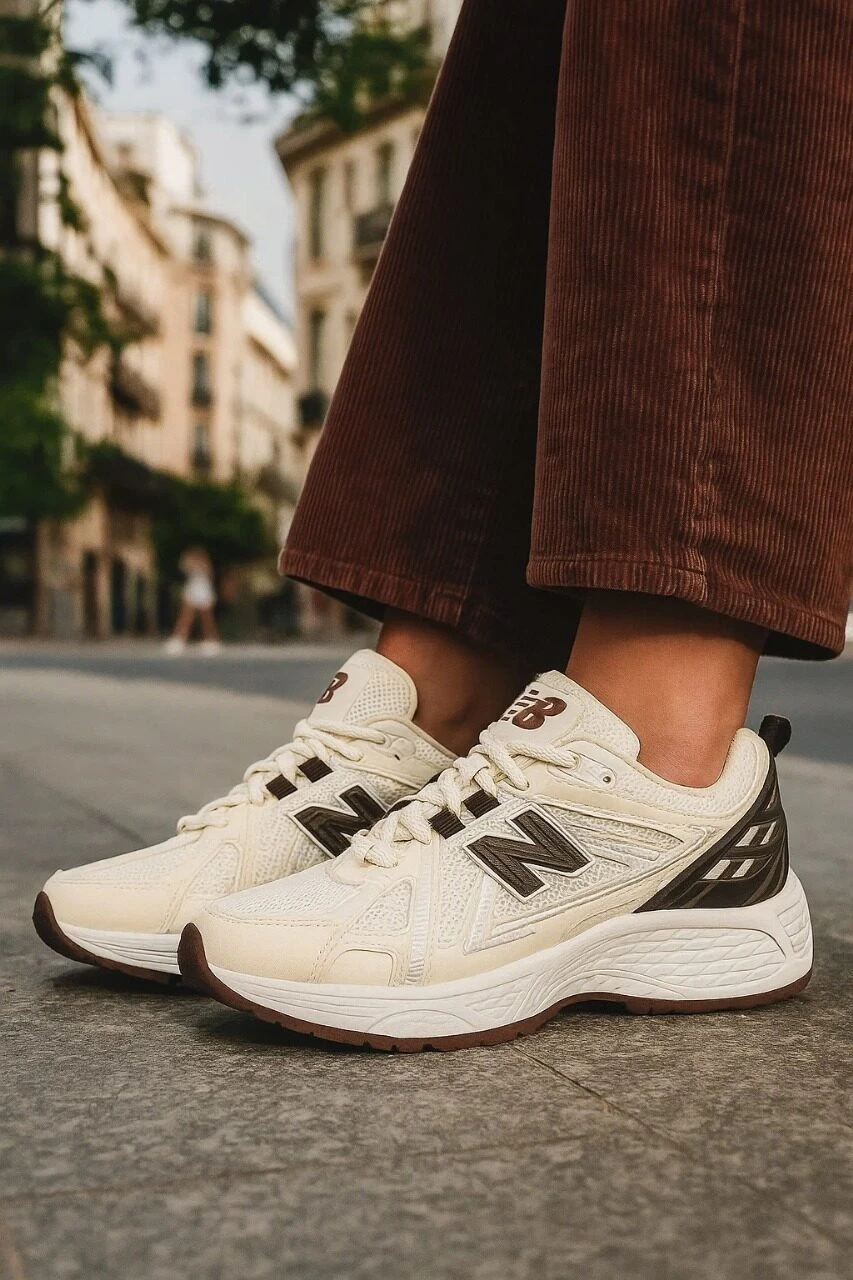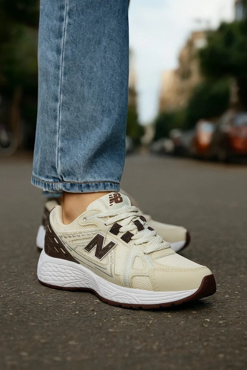 حذاء نيو بالانس الرياضي باللون الأوف وايت والبني