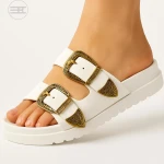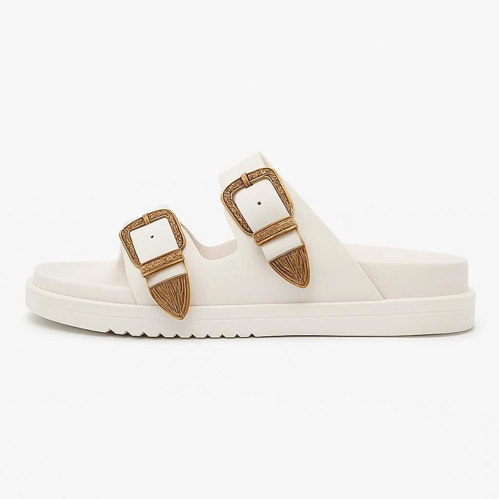 سليبر بحزامين وإبزيم ذهبي مزخرف – أناقة يومية بلمسة فاخرة