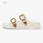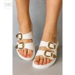 - التصميم: سليبر أبيض أنيق بتصميم مفتوح من الأمام بثلاثة أحزمة عريضة.