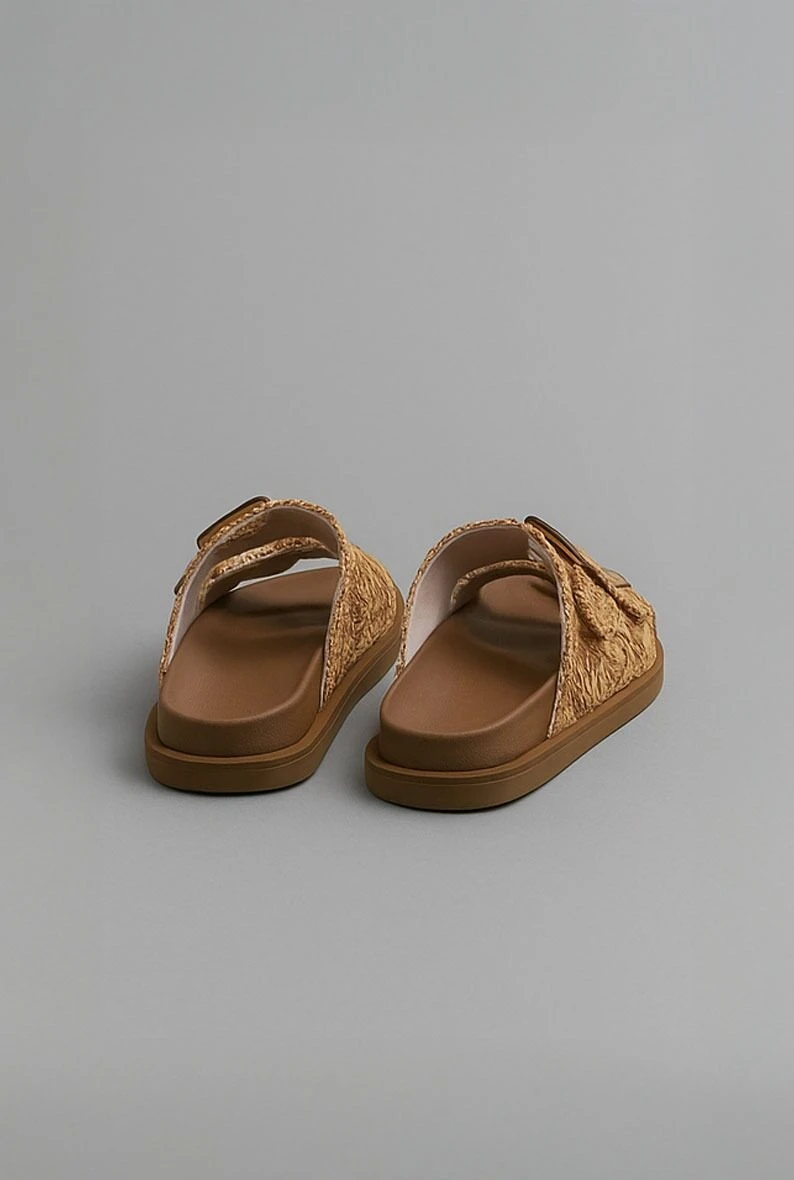 سليبر بحزامين وإبزيم ذهبي مزخرف – أناقة يومية بلمسة فاخرة