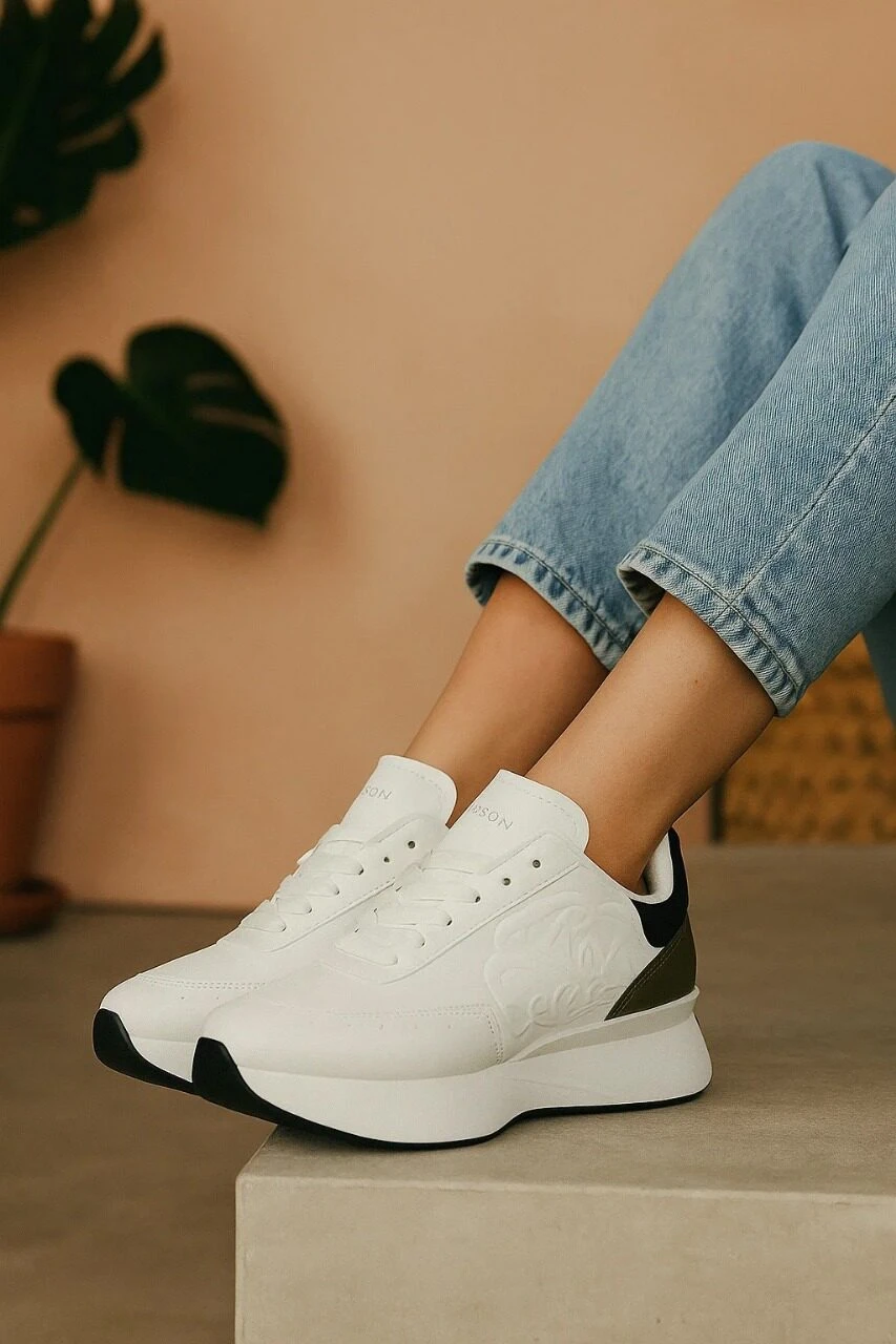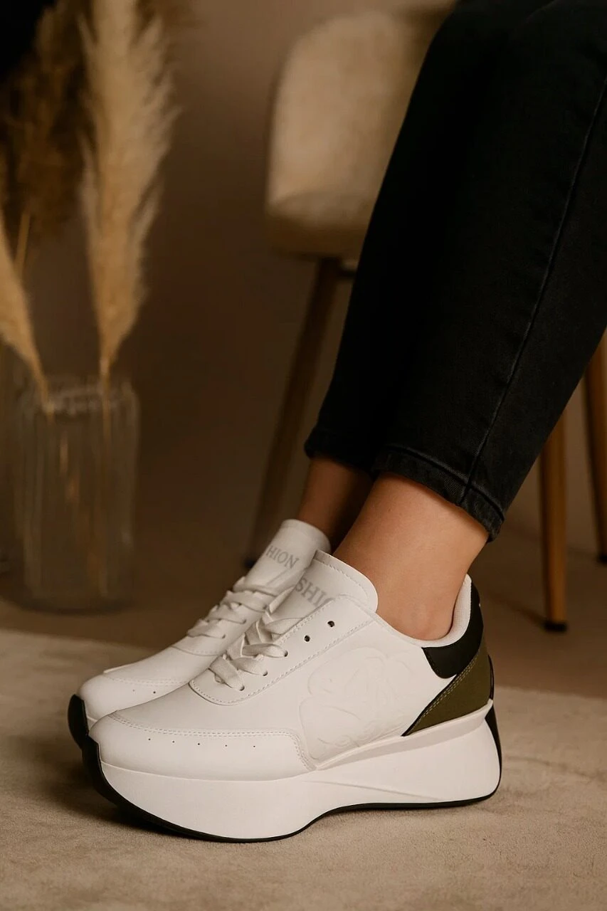 هل تبحث عن الحذاء المثالي الذي يجمع بين الأناقة والراحة؟ حذاءنا الرياضي الجديد هو الخيار الأمثل! يتميز بتصميم عصري يدمج الألوان الأبيض والزيتي مع تفاصيل أنيقة تضفي لمسة من الجمال على مظهرك. مصمم خصيصًا ليمنحك الراحة الكاملة طوال اليوم، سواء كنت في صالة الألعاب الرياضية أو في نزهة مع الأصدقاء.