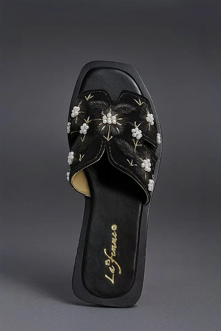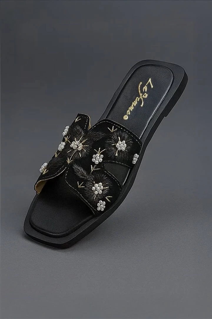 أضيفي لمسة من الرقي والأنوثة لإطلالتك الصيفية مع سليبر Lefanne المميز بالتطريز اليدوي الأنيق.