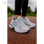 - Color: Clean white upper with subtle light blue highlights on the tongue and heel tab.