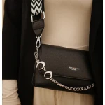 - Features a sleek silver chain strap that adds elegance and edge