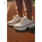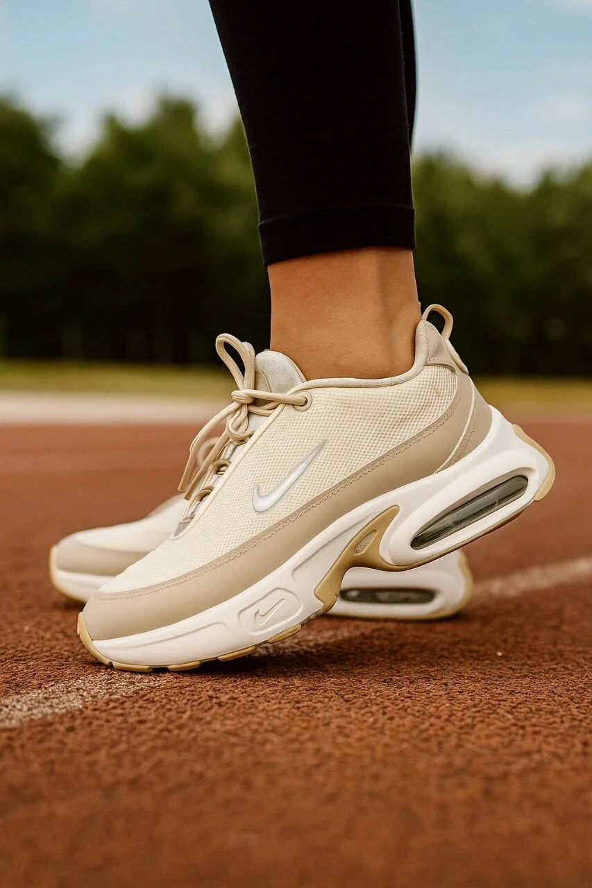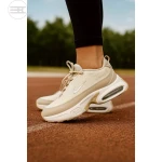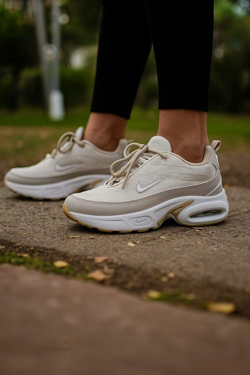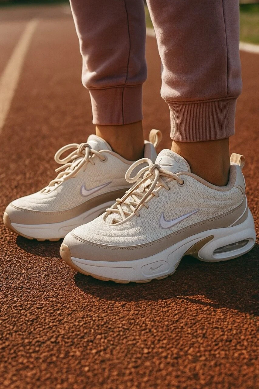 This Nike shoe offers a perfect embodiment of supreme comfort and contemporary style, drawing inspiration from Nike’s rich heritage in Air Max technology. This design features an upper that combines multiple materials in harmonious, neutral tones, with a dominant sandy beige or creamy color across most parts of the shoe. Sculpted details and flowing lines highlight a unique aesthetic, while the iconic Nike “Swoosh” logo appears on the sides in a light or semi-transparent shade, adding a touch of sophistication.