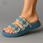 Slide with Zigzag Stitching and Gold Buckles – Baby blue