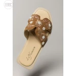 Add an elegant, feminine touch to your summer outfits with this Lefanne flat slipper featuring beautiful hand embroidery.