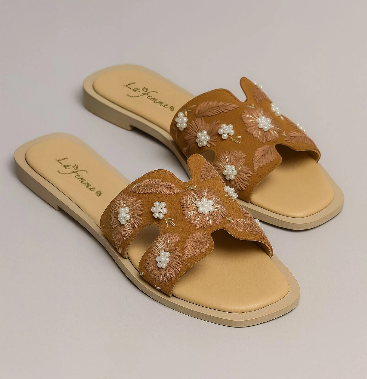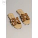 Lefanne flat slipper – Warm camel color with a beige base for a chic finish